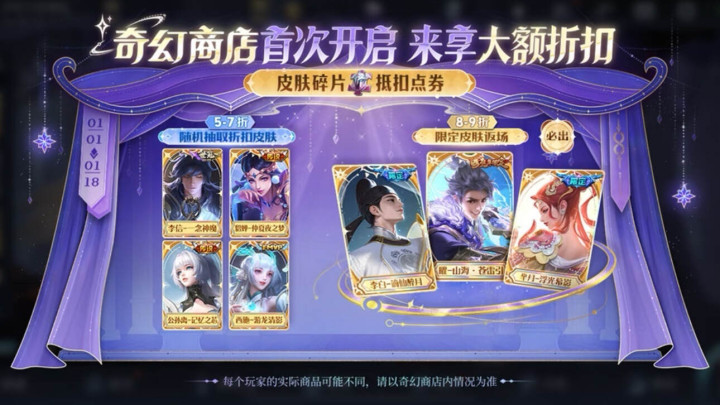 在一月初王者荣耀首次推出奇幻商店,相比较神秘商店,奇幻商店的皮肤最低也是五折,只不过每一款皮肤都有不同的折扣。