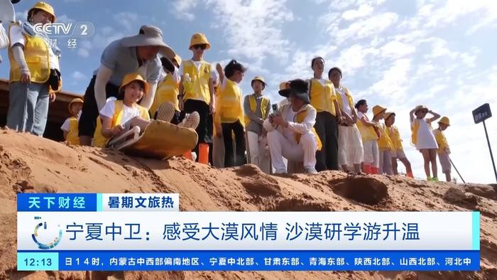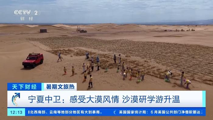 今年暑期,不少孩子来到位于腾格里沙漠东南边缘的宁夏中卫沙坡头旅游景区,体验滑沙的乐趣,扎制治沙“利器”麦草方格,感受大漠风情。