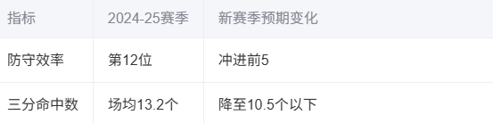 战术转型:特纳场均2.2盖帽的护筐能力可弥补雄鹿防守短板,上赛季限制对手篮下命中率低至51.3%(联盟前10%);