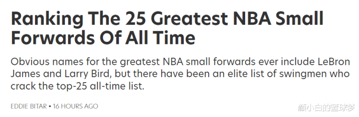 两天之前,美国媒体HoopsHype评选了NBA历史前20大小前锋: