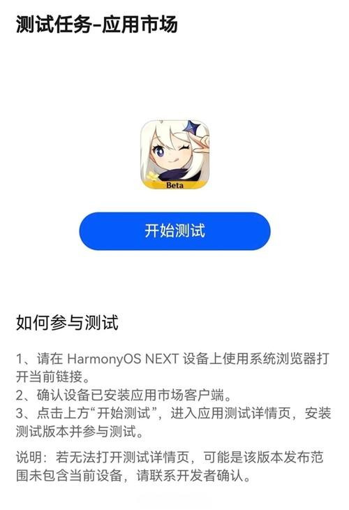 鸿蒙用户期待已久的《原神》鸿蒙版近日终于正式开启邀请测试阶段。目前,这项测试仅面向受邀用户,受邀者需通过短信收到测试链接,点击后可跳转并安装游戏(仅支持HarmonyOS NEXT设备)。如果未获得资格,用户需等待《原神》进一步扩大测试规模或开放尝鲜时再进行体验。