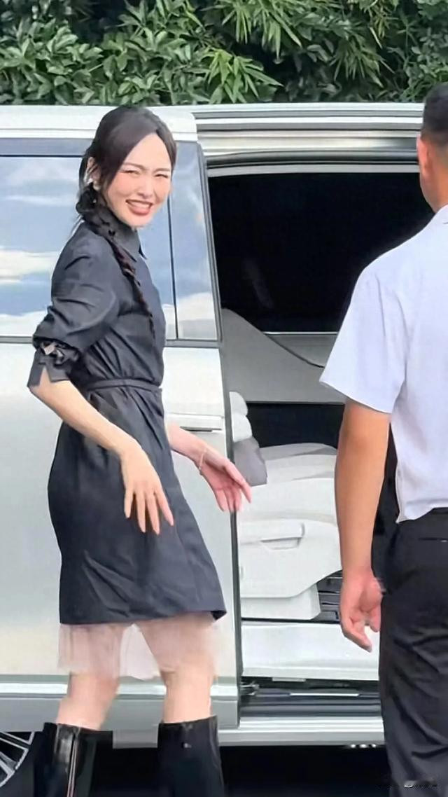 41岁唐嫣最新穿搭: 连衣裙+长筒靴, 混季风高级时尚, 美得像25岁