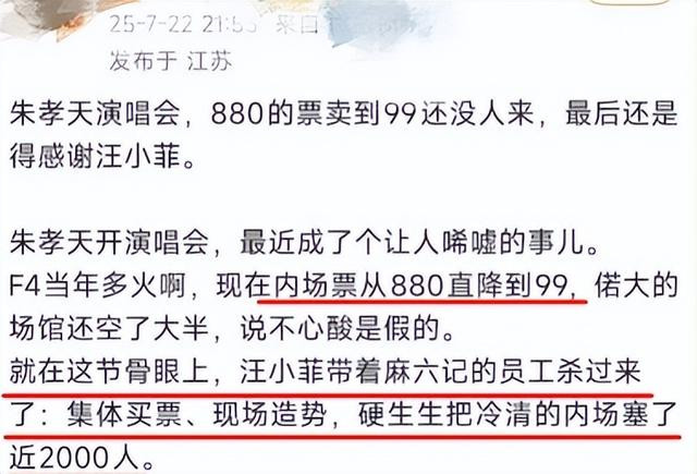 还有关键一点,朱孝天的演唱会不被欢迎,其实也与汪小菲有关。