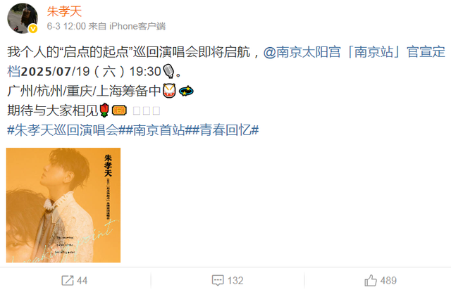 2025年6月3日,已经多年没开过演唱会的朱孝天“卷土重来”,官宣自己要在今年开启个人巡回演唱会了。