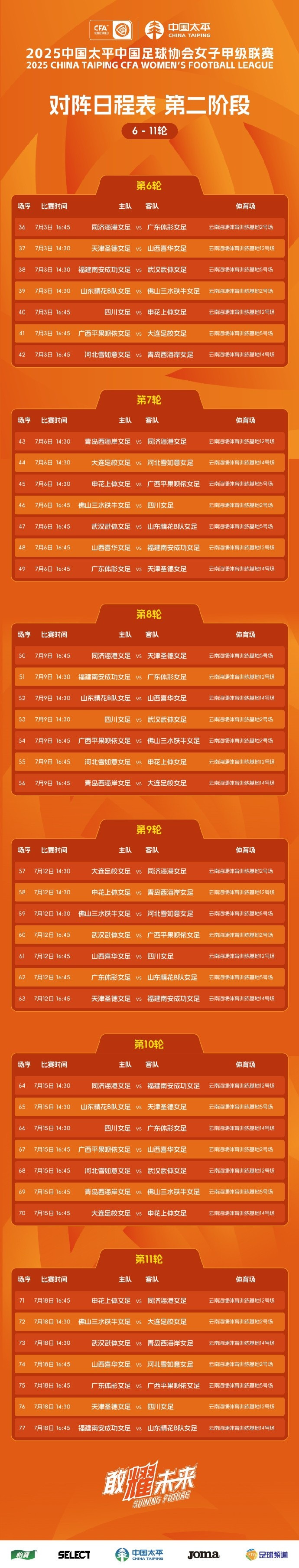 据悉,本赛季女甲联赛第二阶段的比赛将在海埂基地持续进行至7月18日,共进行42场次的比赛。