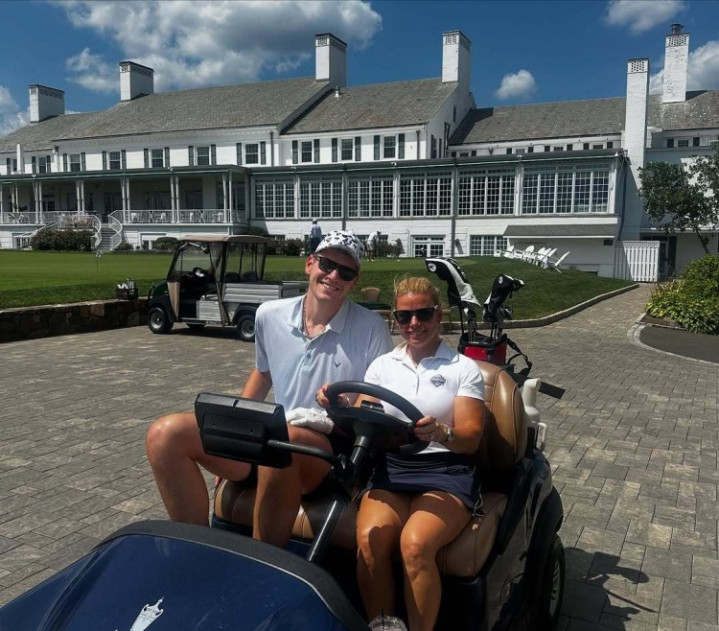 直播吧8月1日讯 开拓者官博更新,晒出中锋克林根打高尔夫球的帅照。