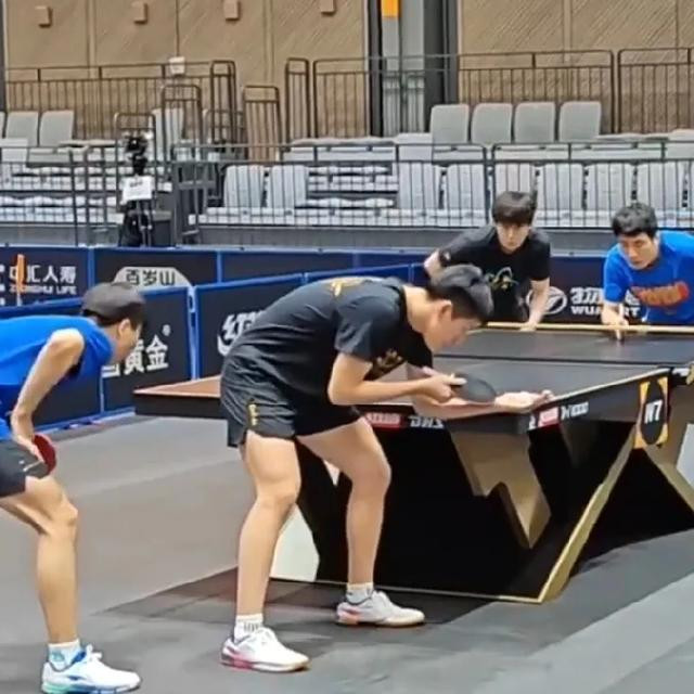香港队的运动员和国乒队拼桌,孙颖莎和蒯曼对练,王曼昱还是和石洵瑶一起练,国乒备训氛围挺好的,个个笑容满满。王楚钦、梁靖崑和徐瑛彬、温瑞博练男双。国乒成为“打卡点”,外协运动员纷纷来合照。