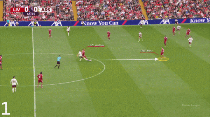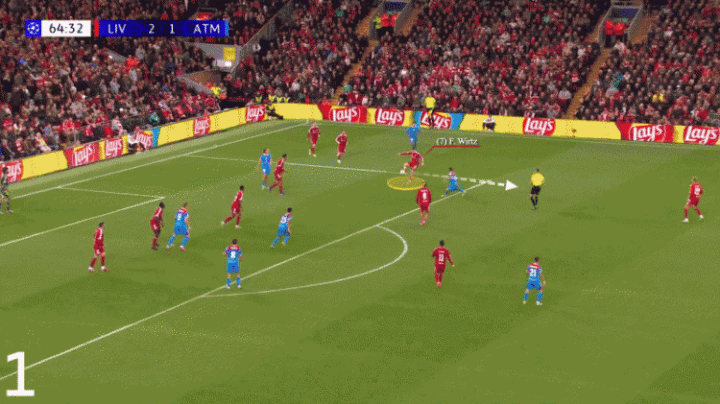 比如下面这个例子,来自周六比赛下半场刚开始——这本是利物浦希望他能跑进去的位置……