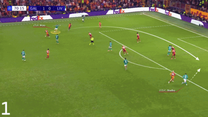 就拿对加拉塔萨雷这场来说,他传出了几脚好球,在球队0比1落后的下半场,还创造了利物浦为数不多机会中的两次: