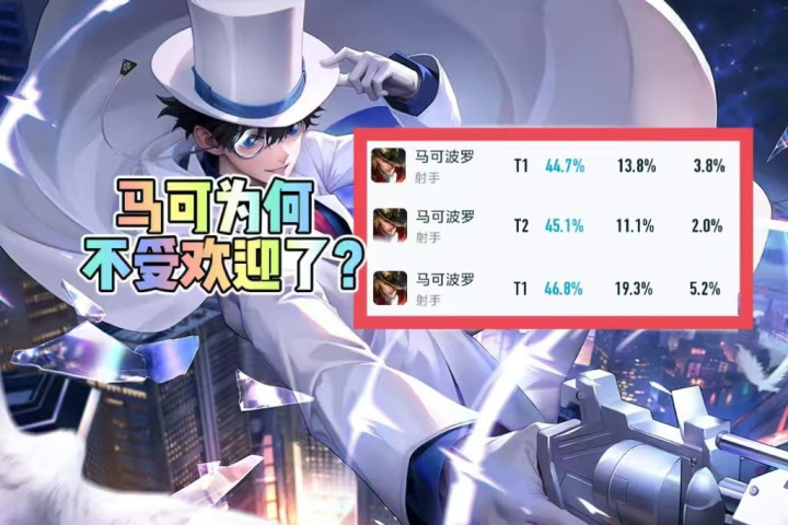 新赛季已经开启好几天了,不知道大家有没有注意到,射手马可波罗在这个赛季的登场率大幅下滑,上个赛季经常能维持30%的出场率,如今只有不到20%,甚至巅峰赛仅有11%左右,至于胜率虽然本就没有太多下降空间,但目前也是发育路三榜倒一。那么,被玩家曾经誉为最好玩的英雄之一,马可波罗怎么突然遇冷了呢?