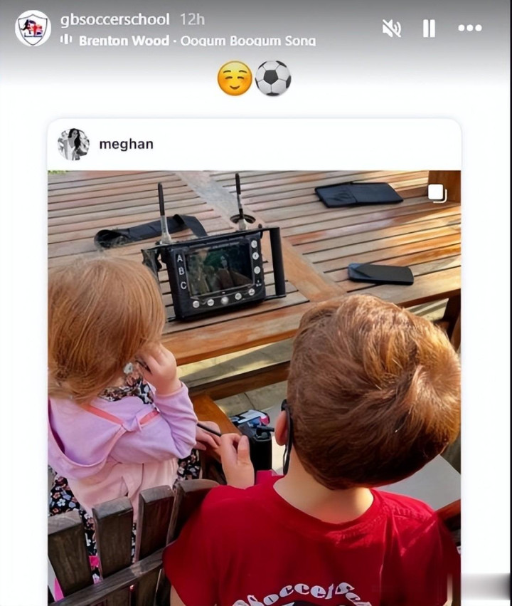 阿奇王子所穿的印有“GB足球学校”的标志球衣,这所学校后面还在自家社交平台上转发了梅根的帖子,并且配上了笑脸和足球的表情符合,也证实了阿奇是他们的学生之一。