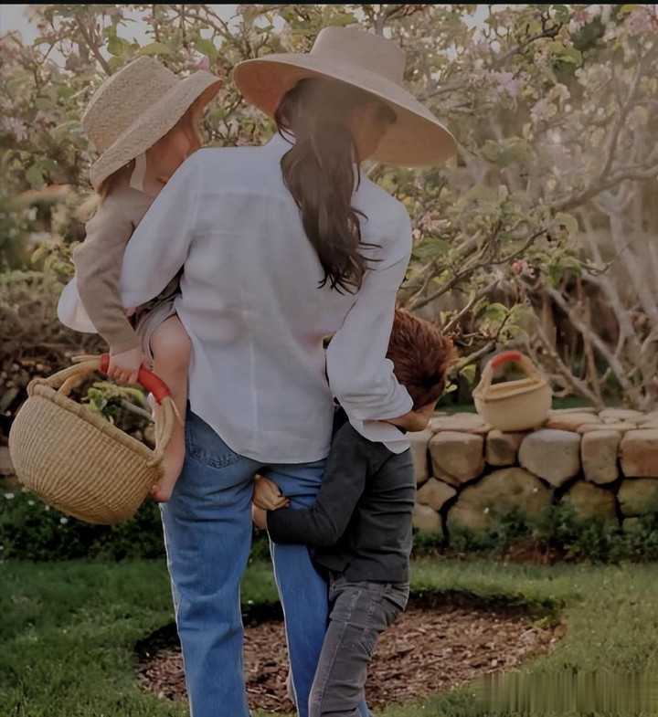 这对混血小兄妹现在一个6岁,一个4岁,都已经是在上学的年纪了。梅根晒两个娃还是老办法,别别扭扭既要又要,只拍背面或者侧面,正面就打码。